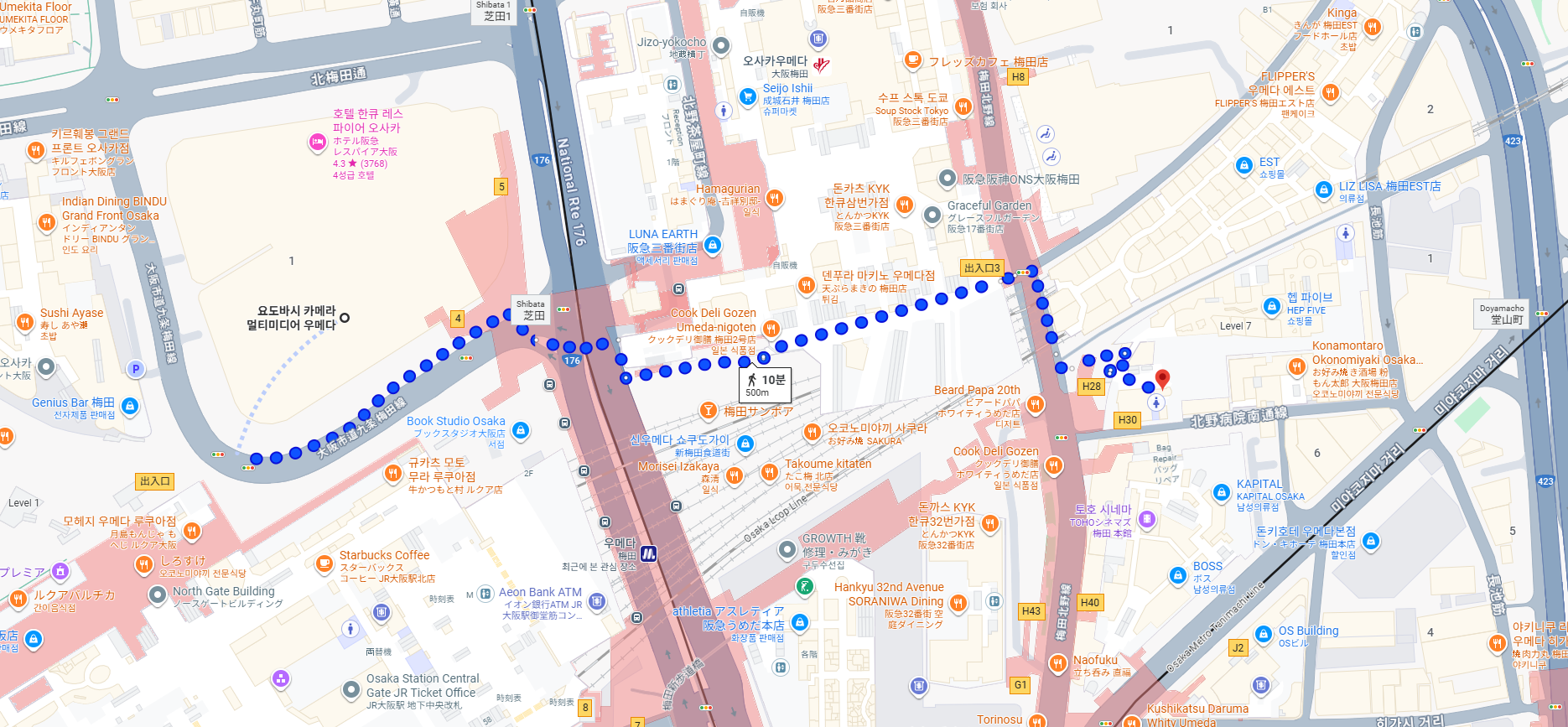 - 이동: 우메다역 에서 도보 2분거리로 바로 앞에 있어요