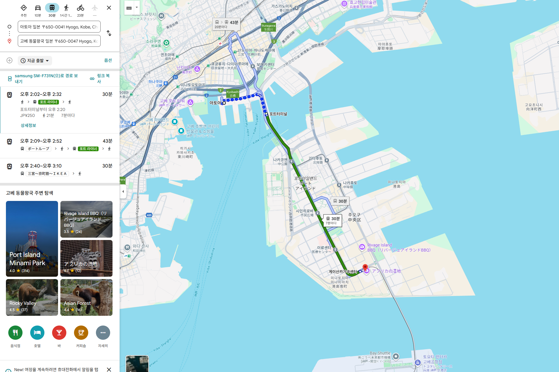 - 이동: 스마 씨월드에서 아토아 수족관까지 30분정도 걸려요
