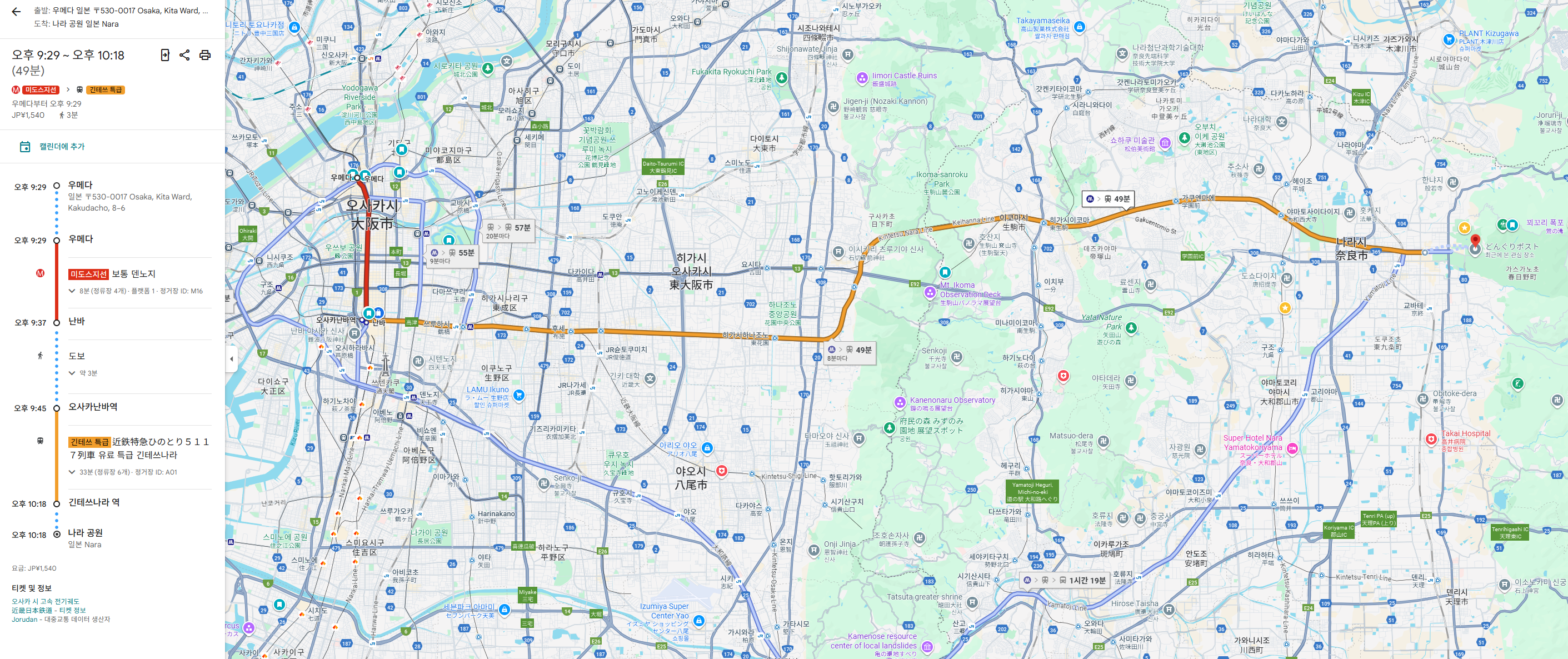 | 09:00 ~ 10:00 | 오사카 → 나라 이동 | JR 또는 긴테츠선 | 약 1시간 소요 | 유모차 탑승 가능 |